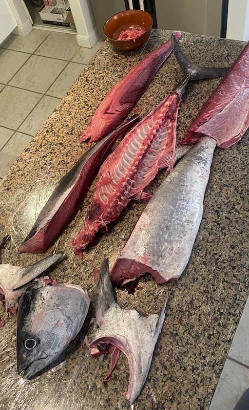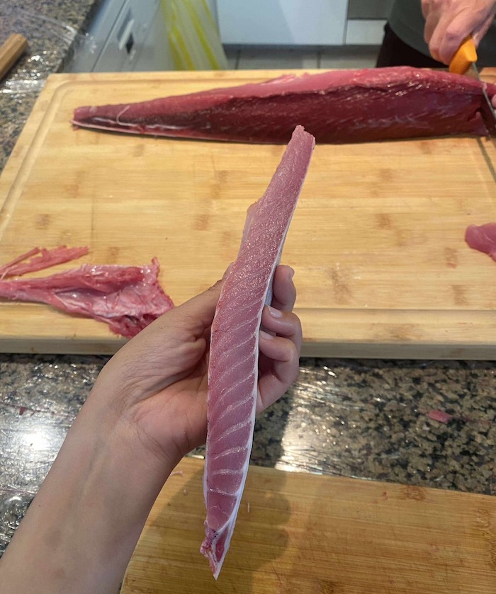知人がスピットの先端の岩場でマグロを釣り上げました。え!あそこにマグロがいるんだと驚きでしたが、結構沢山いるそうです。大物は仕掛けや技術や力も必要ですが岩場に立って釣るのでバランスも大事で、こんな大物を釣り上げるのはさぞ大変だったと思います。大きくてビックリです。知人はルームシェアをしていて同居人が生臭いのはイヤという事で私達がこのマグロを戴きました。ラッキーです。そして卸して刺身にして頂きました。美味しかったです。大量だったので翌日もお刺身で頂きました。翌日の方がネットリとしてて美味しかったです。ありがたい事です。感謝感謝。