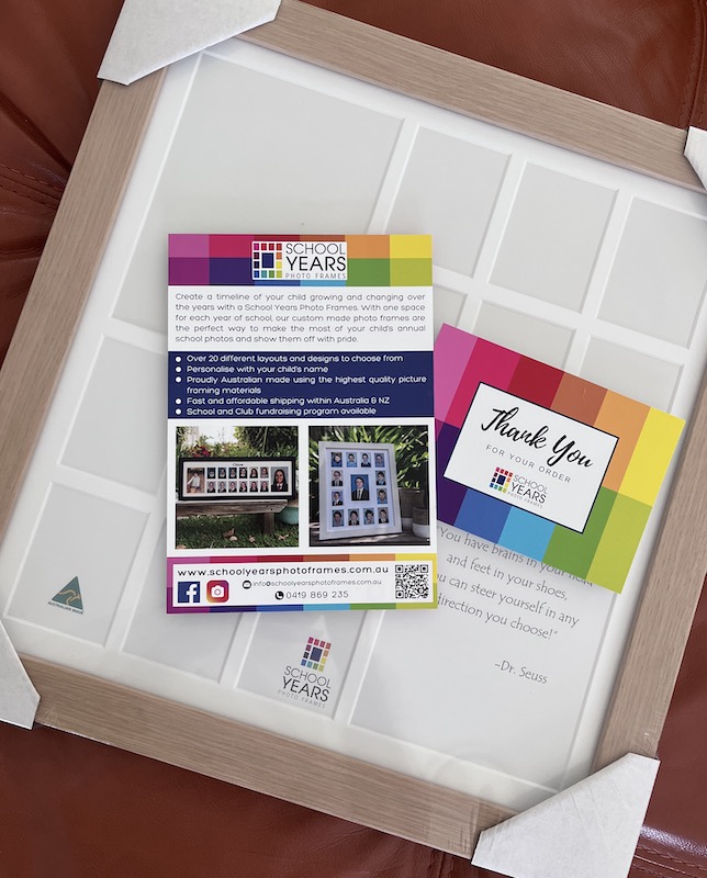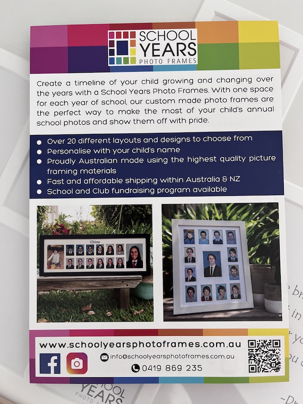 やっと、今年、息子がYear 7(中学1年生)になったタイミングで購入しました。Prepから1年ごとに写真を並べて飾ってみると、成長の様子が一目でわかり、とても感慨深いものがあります。大きなフレームには、チャイルドケアの卒業写真と、Year12の写真を入れる予定です。